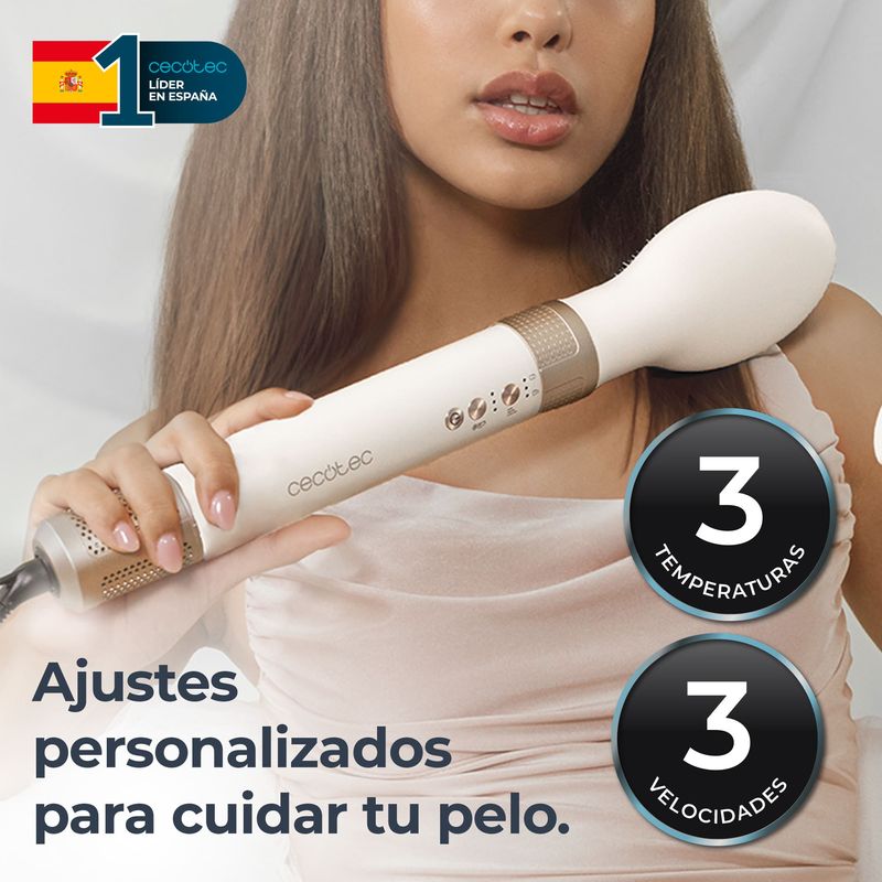 3 velocidades de flujo de aire: regula el flujo de aire de tu moldeador según las necesidades de tus peinados.