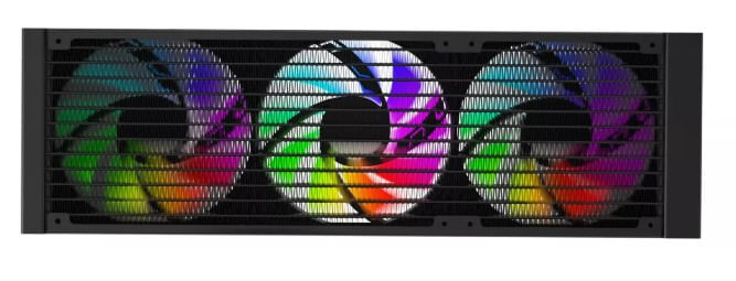 Tres ventiladores ARGB: Los ventiladores cuentan con iluminación RGB personalizable, añadiendo un toque visual impresionante a tu equipo mientras maximizan el flujo de aire.