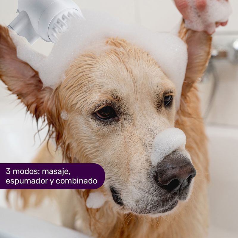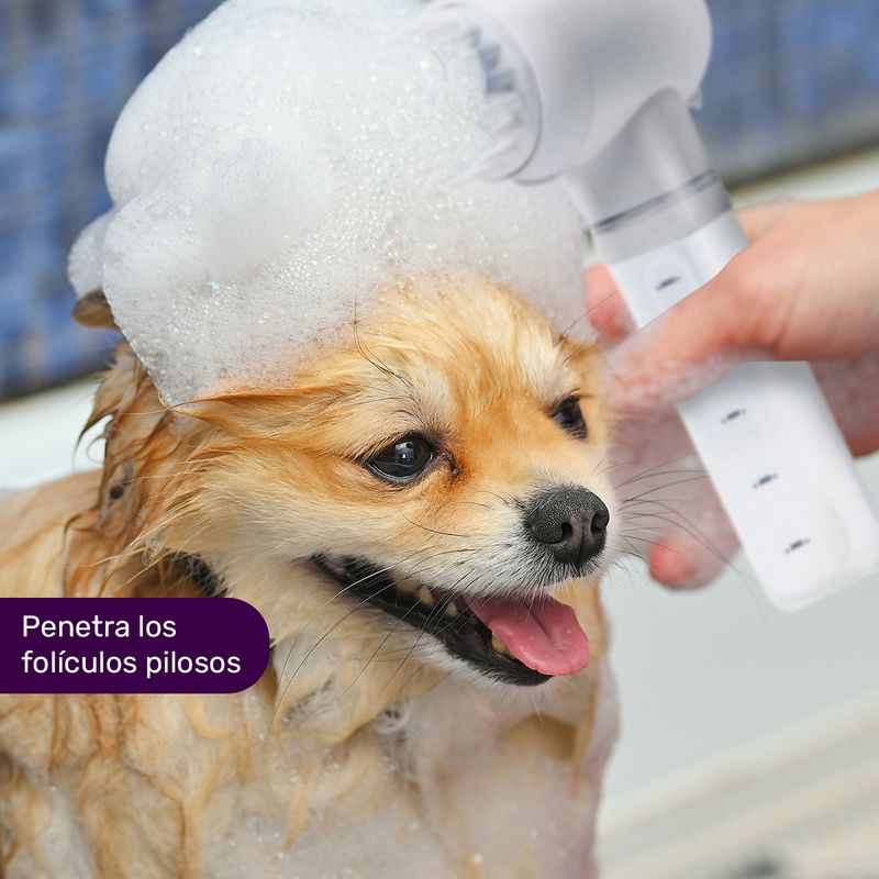 Su cabezal vibra a 8000 RPM, estimulando la circulación y ofreciendo un masaje suave que transforma el baño en un momento de placer para tu mascota.