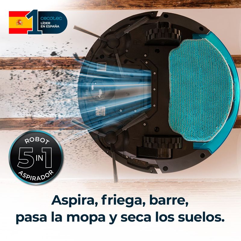 Robot 5 en 1: aspira, friega, barre, pasa la mopa y seca.