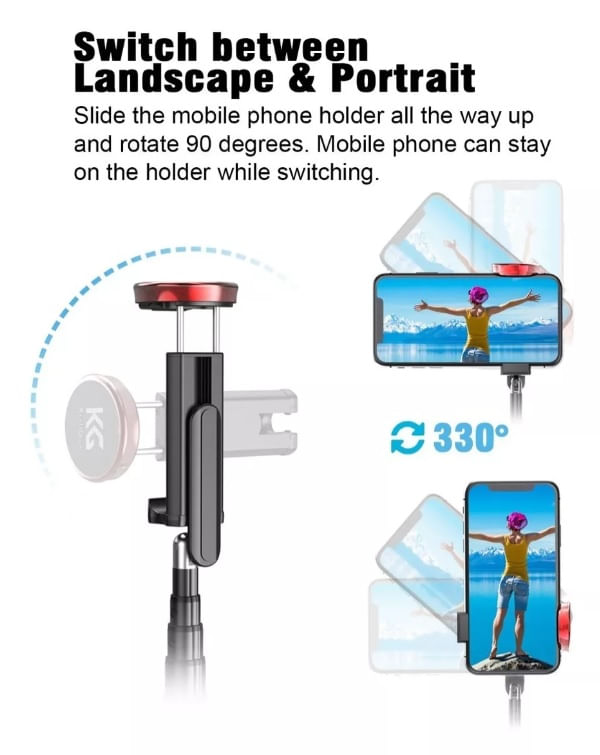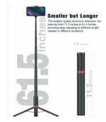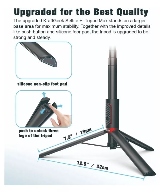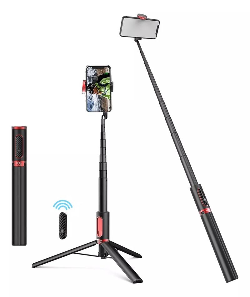 - Diseño 3 en 1: selfie stick + trípode + control remoto Bluetooth