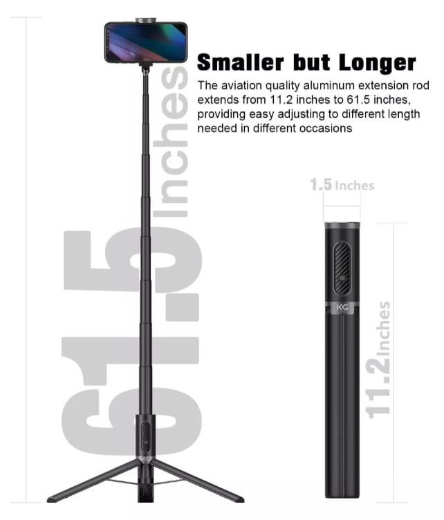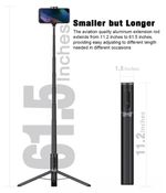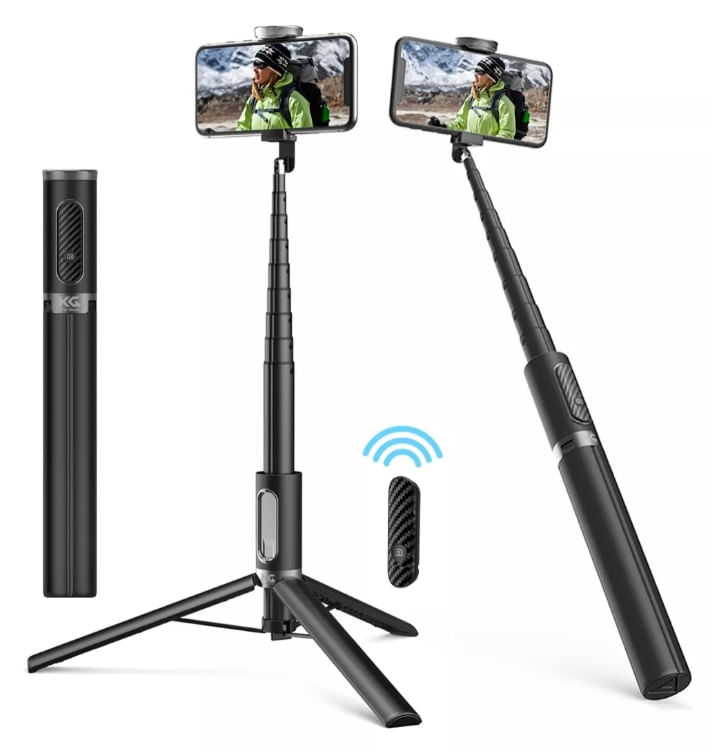- Diseño 3 en 1: selfie stick + trípode + control remoto Bluetooth