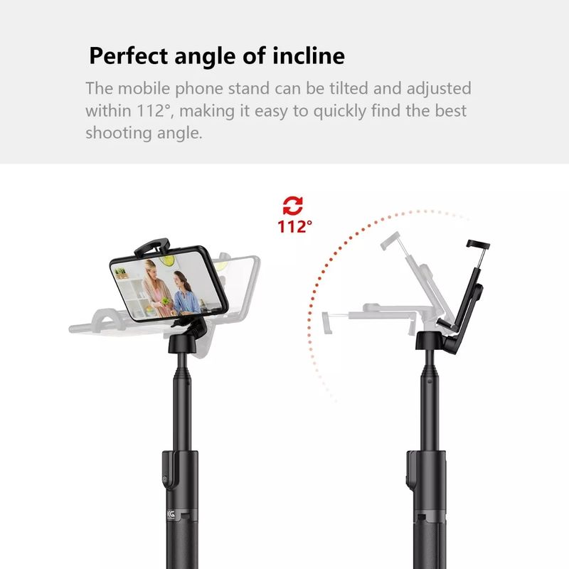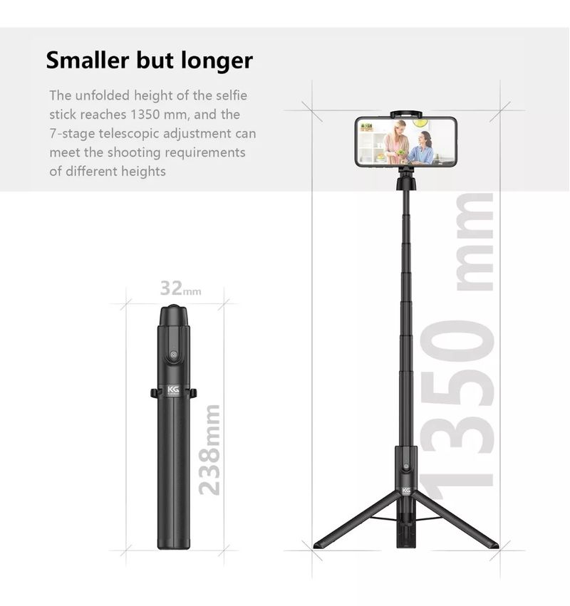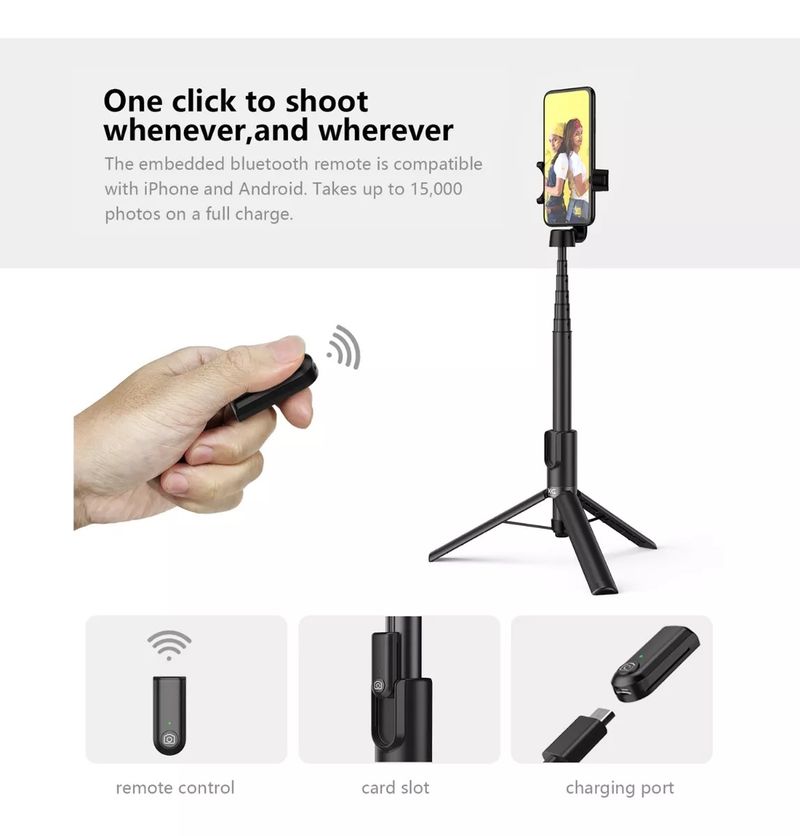 - Diseño 3 en 1: selfie stick + trípode + control remoto Bluetooth